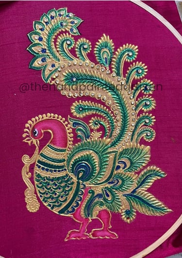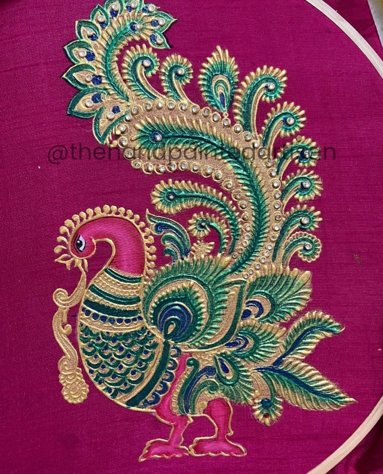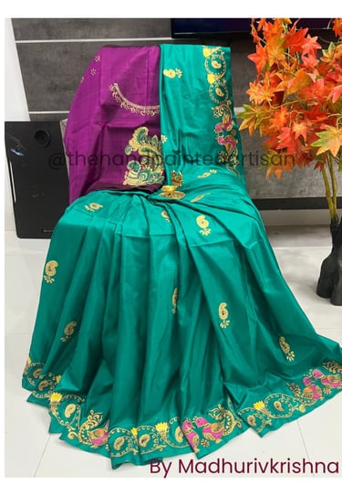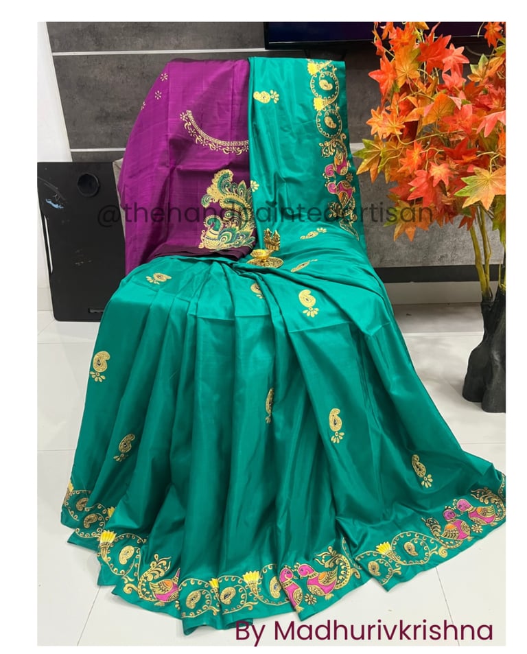 Sarees crafted with cultural motifs of TANJORE PAINTING